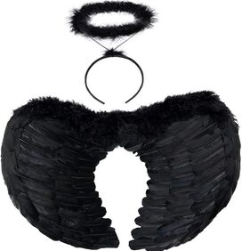 Step into the world of dark elegance with the Mystic Black Angel Wings and Halo Set. Crafted from lightweight chiffon tulle, the flowing black wings