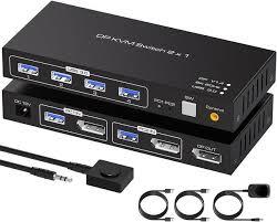 Take full control of two computers or laptops with one set of keyboard, mouse, and dual monitors using this DisplayPort KVM switch. Designed for professionals and gamers alike, it supports both extend and mirror modes, ensuring seamless multitasking across two displays. With support for ultra-high resolutions up to 8K@60Hz and 4K@120Hz, this switch delivers crisp visuals and smooth refresh rates for an immersive viewing experience. (Note: Ensure your devices, monitors, and cables support these resolutions and that your system has dual DP outputs.)