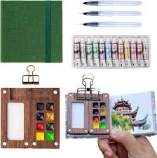 Unleash your creativity anywhere with this complete watercolor travel set, featuring a wooden mini palette with 24 vibrant colors, 2 high-quality watercolor sketchbooks, 5 precision brushes, and a metal binder clip for convenience. Compact and lightweight, the 3.14″ x 3.34″ mini palette and 3.14″ x 3.14″ sketchbooks make it easy to paint on the go—perfect for capturing nature scenes, travel memories, or spontaneous inspirations.